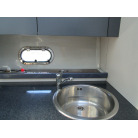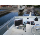 エンジンはアフトデッキ下に(キャビン外)設置されていますので走行時の騒音はキャビン下に積載された通常シャフト艇と比較すると静かでキャビンも広々しています。