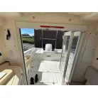 キャビンドアは、ワイドオープンが可能で、開けておくとキャビン内とアフトデッキが一体になるような造りになっています。