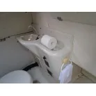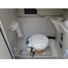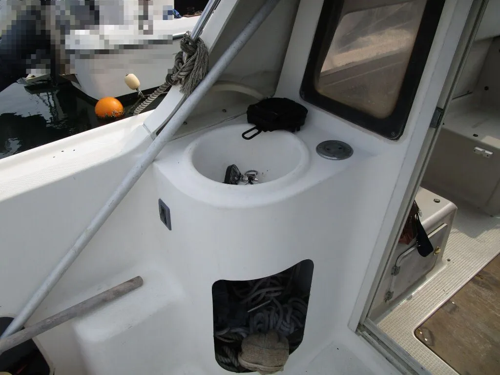 個室トイレも装備されています。ご家族、ご友人との釣り及び、今からの季節には海水浴等も楽しめそうなマルチパーパス艇だと思います。