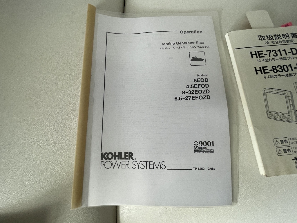 フライブリッジのコンソールに、レーダー、GPS・魚探、マリンVHFを装備、FURUNOソナーは画面焼けしていて使えないと思います。