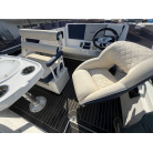 操船席横のパッセンジャーシートの背もたれは前後に倒れるので、対面シートとして利用することも可能です。