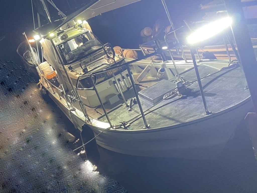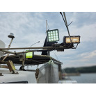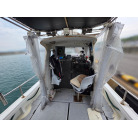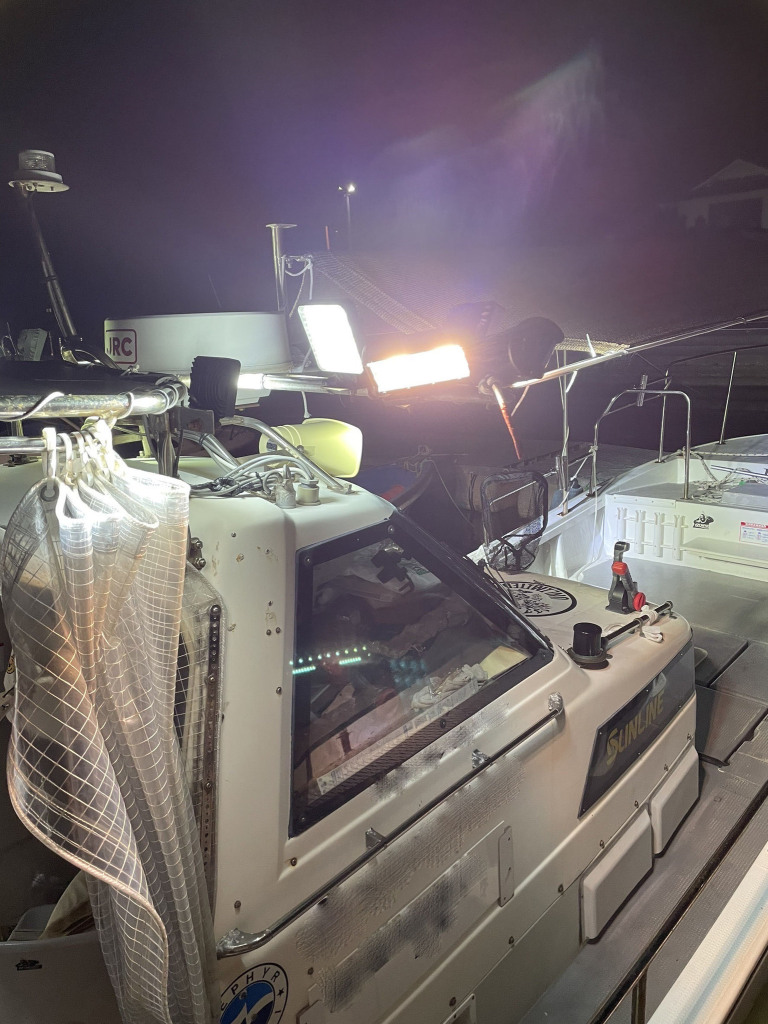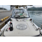 各所にあるライトも明るく、夜間の釣り等に活躍しているようです。(オーナー様提供写真参考)前後にオーニングも完備。雨風を防げるシートもありますが、キャスティングに邪魔にならないようにとデッキ外側より少し内側に張り出しているようです。