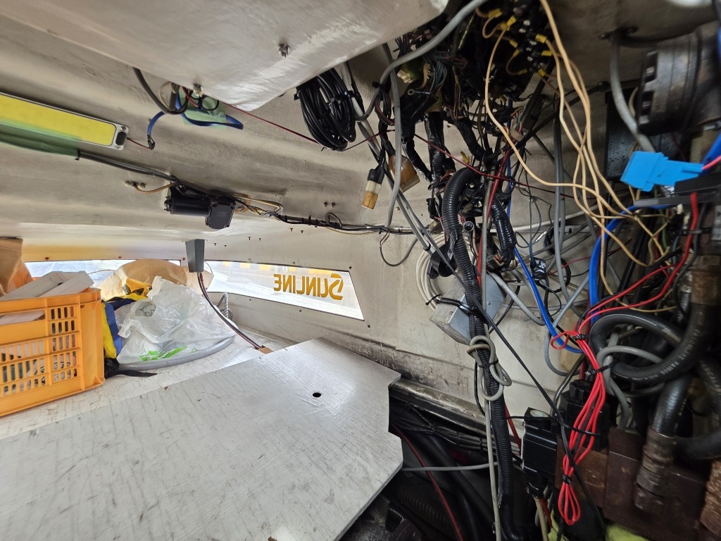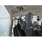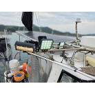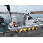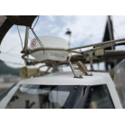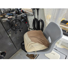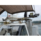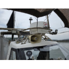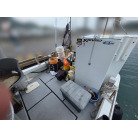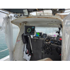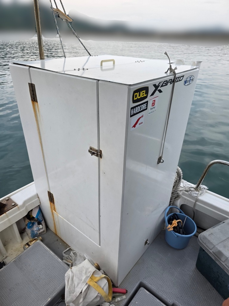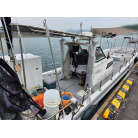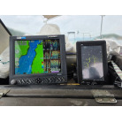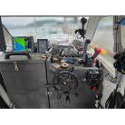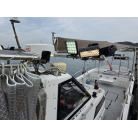 オーナー様、この艇は現在遊漁にて使用されており、装備は充実しております。キャビン上から吊り下げで装備されてるホンデックスHE−773は上下し作業・操船に邪魔にならないように工夫されてます。また、レーダー、リモコン等の操船補助器具も充実。デッキ上、キャビン前でもスロット等コントロールが可能です。