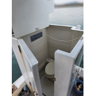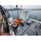 遊漁船としてご使用されてますので、周りのレール等は子供でも安全に楽しめるようにと装備してあり、後部にはコンパクトながらも、どんな人でも使えるようにと工夫されたマリントイレも装備されてます。