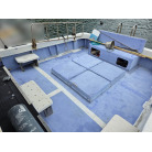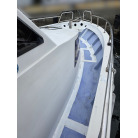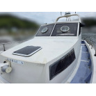2機掛けエンジンなので、燃費や維持費は高めになると思いますが、安定した走りと、十分なパワー(速力)はあるようです。オーナー様、全開走行はしたことないので、わからないが37ノット前後は出るでしょうとのことです。