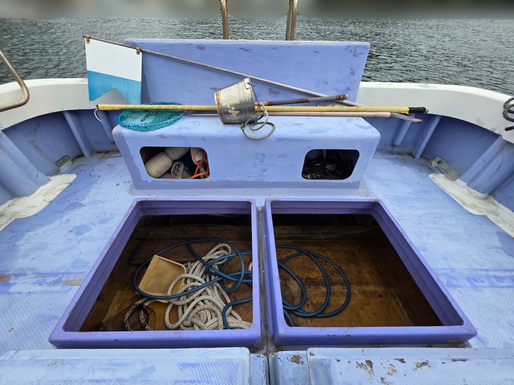 この辺りの地場造船、片岡造船所の作りということもあり、艇の横幅も広く、渡船をちょっと短くした感じの艇です。