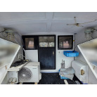 エアコンは室内の写真に写っております発電機で動かしているようです。使用時はうるさいので船外に出して使用してますとのこと。発電機もそのまま付けて売りますとのことです。