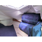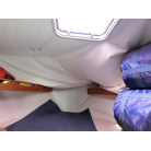 バウキャビンの天井、クロスが落ちてきています。