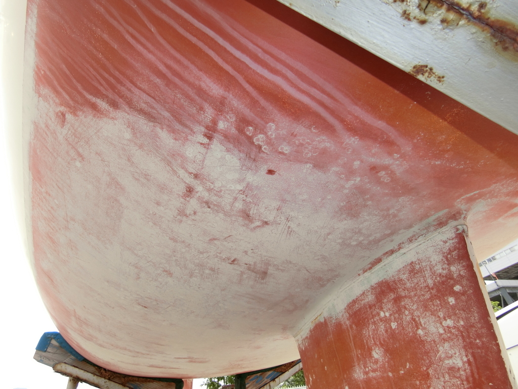 ・船底周りは以前の塗装が残った状態です。