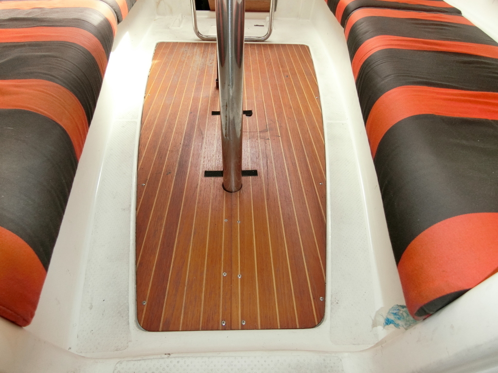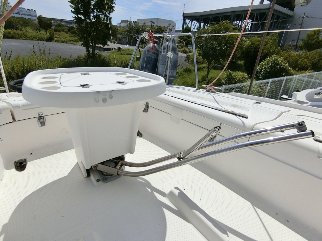 中央のテーブル下部にティラーが配置されているため、スキッパーの後部側にゲストが座ることになります。