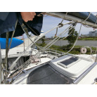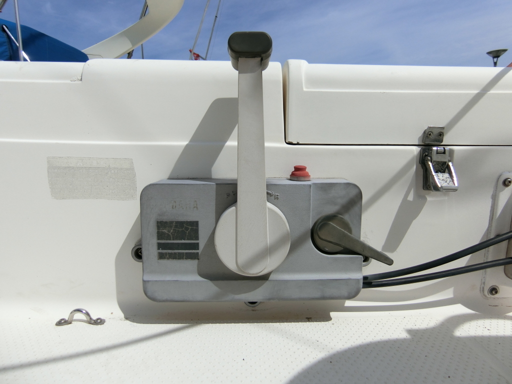 広々としたコックピットはデッキ作業がしやすく、セルフタッキングジブの採用により、少人数でも簡単にヨットを操船できます。船外機のリモコンも設置されておりコッくピットで機走時の操船がスムーズに出来る仕様になります。