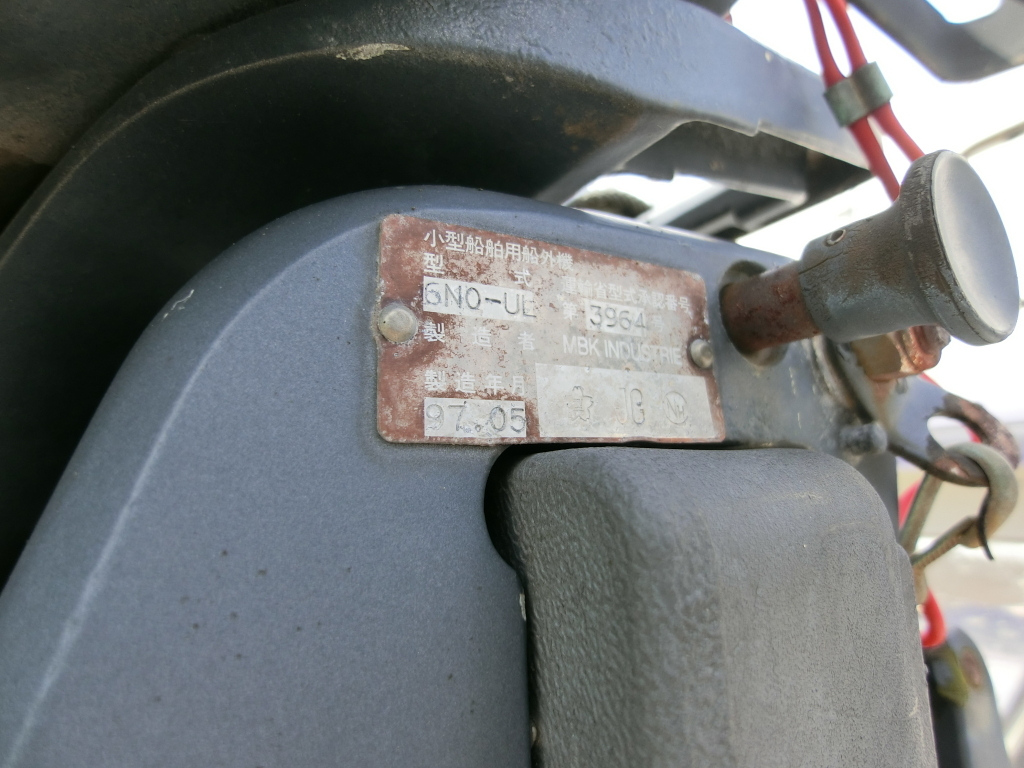 ・エンジンはヤマハの船外機 型式:GN9 8PS/5500rpm 2ストロークです。
