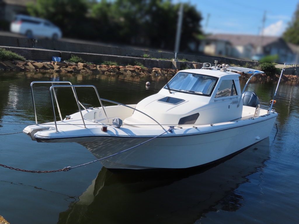取材艇は、釣りファンにはもってこいのウォークアラウンドタイプの中古艇です。