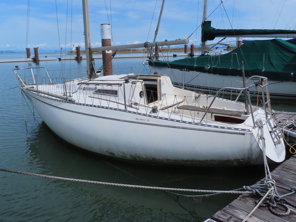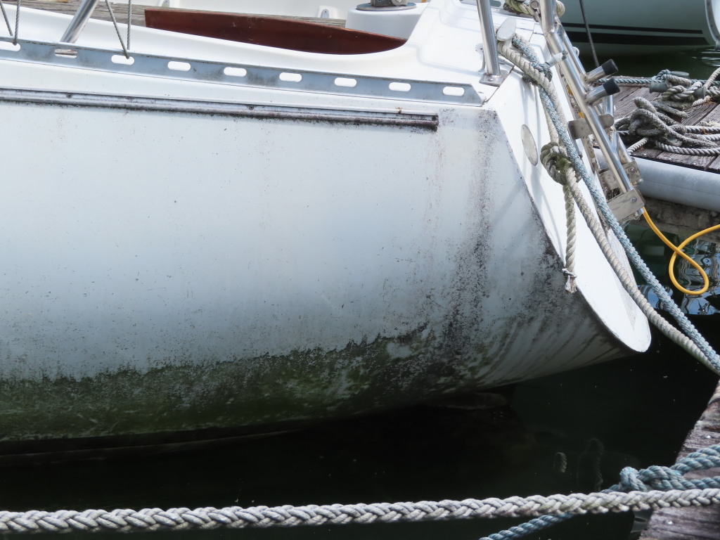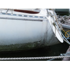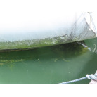新艇から約45年が経過している中古ヨットですので、状態は年式相応で船底に藻などの付着は見られました。