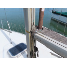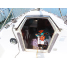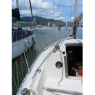メインセールはセール1枚装備していますが取材時船内に収納されていました。