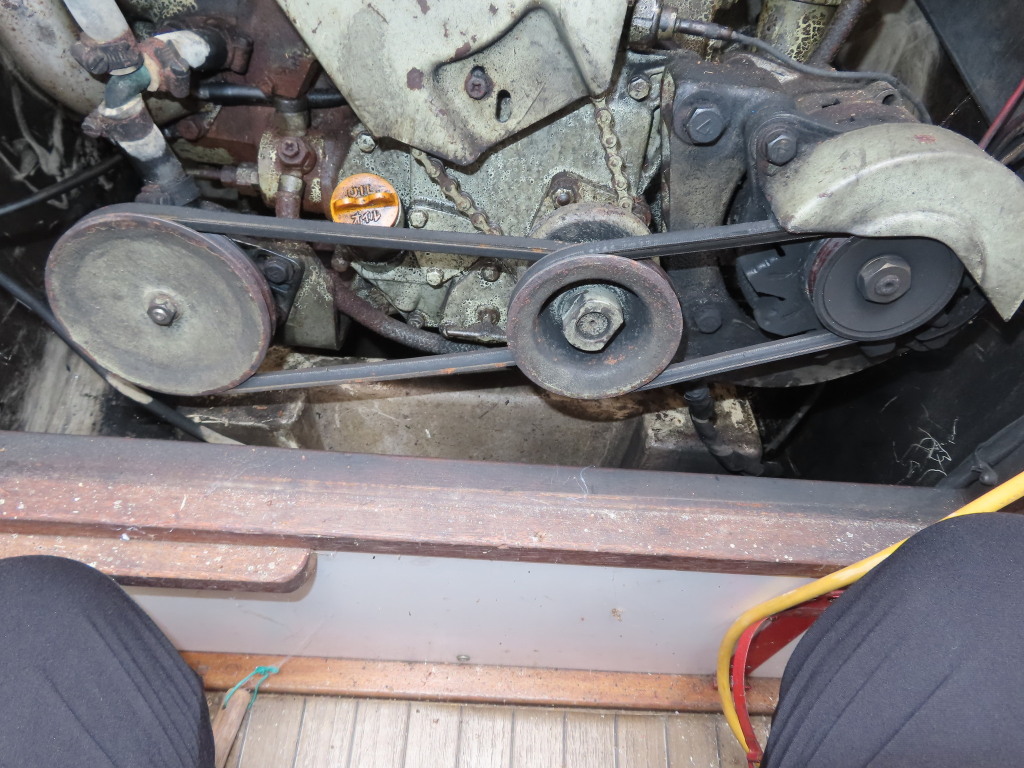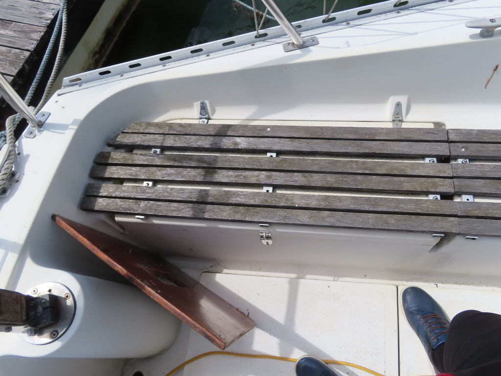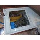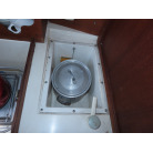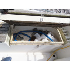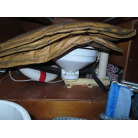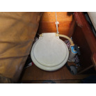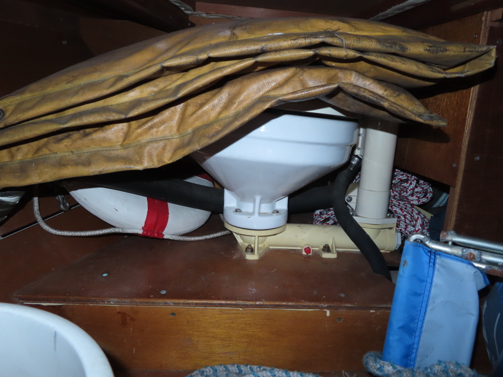 中央のクッションの下には、手動マリントイレが装備されていました。