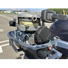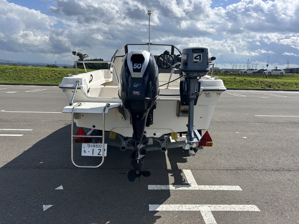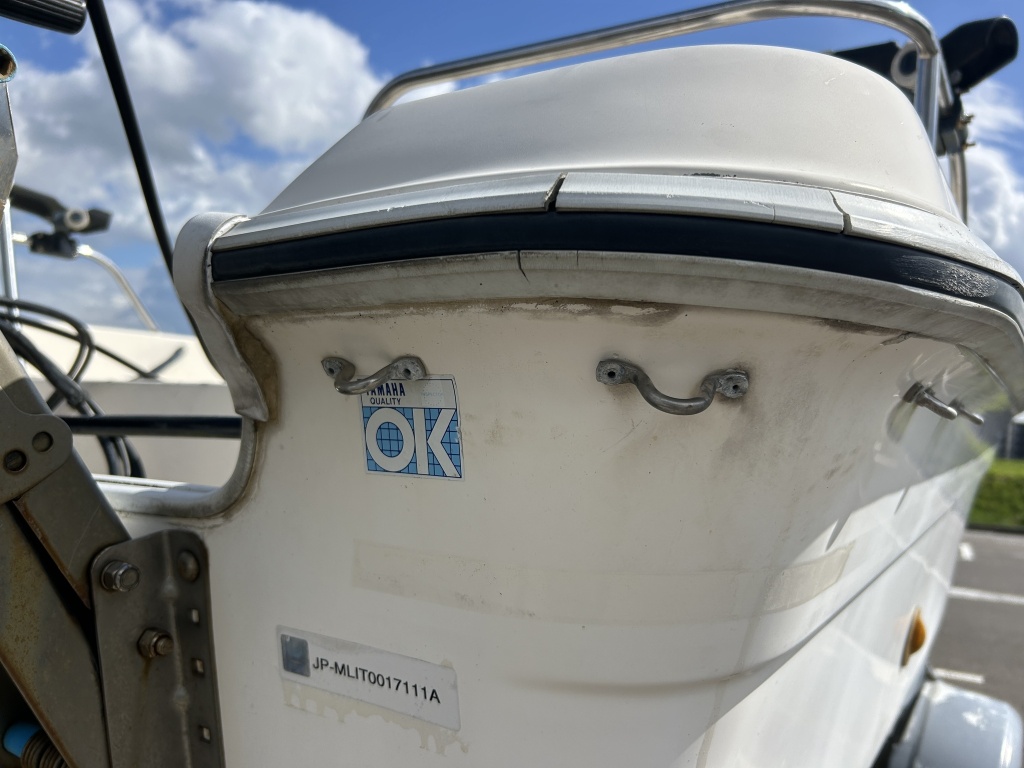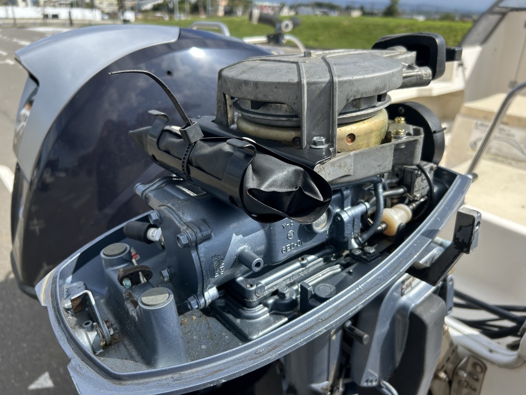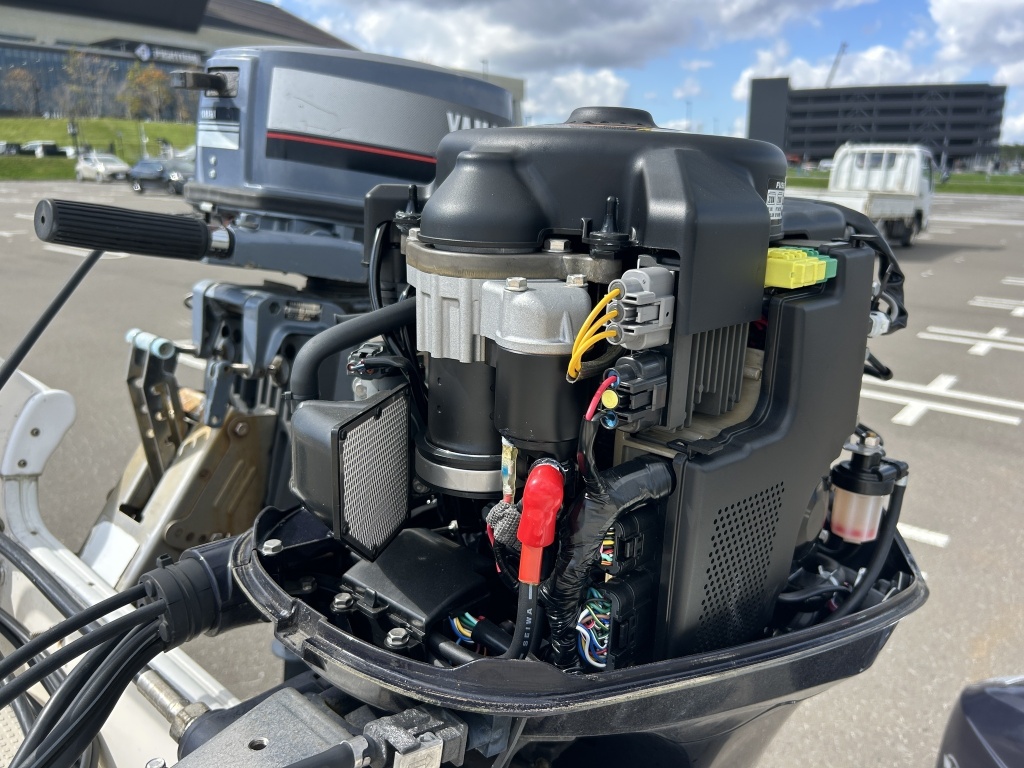 本艇には令和1年製造のトーハツ50馬力エンジンを搭載しています。アワーメーターは装備されていませんが、前オーナー様から「設置以来10時間も使用していない」との申告を受けています。補機にはヤマハ 4PS も付属します。