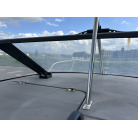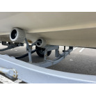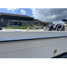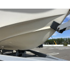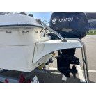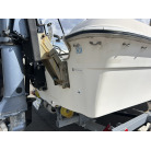 トランサム部にはステップと補機ブラケットが備わり、利便性を高めています。