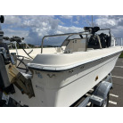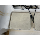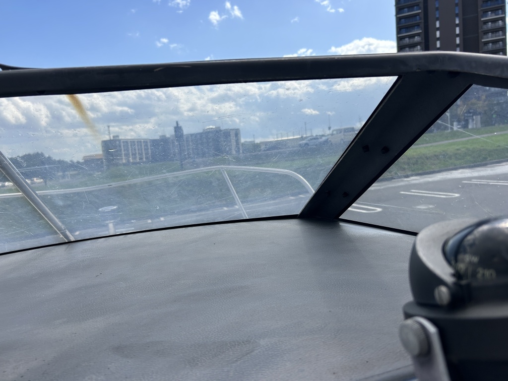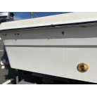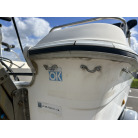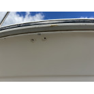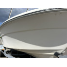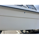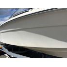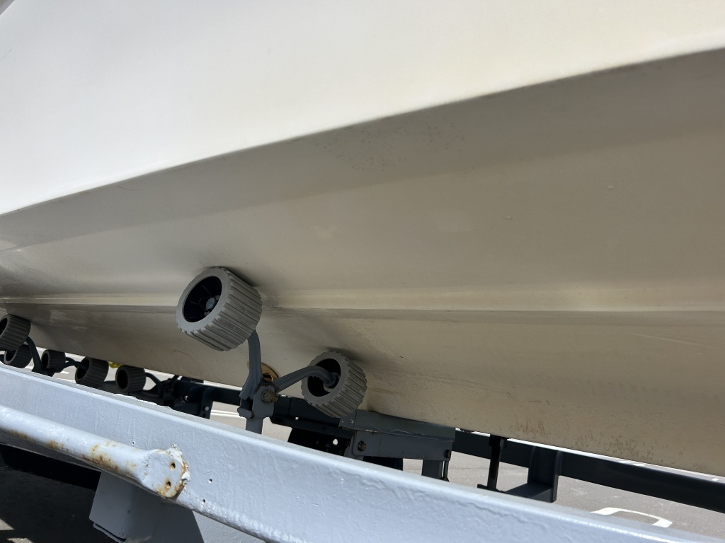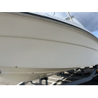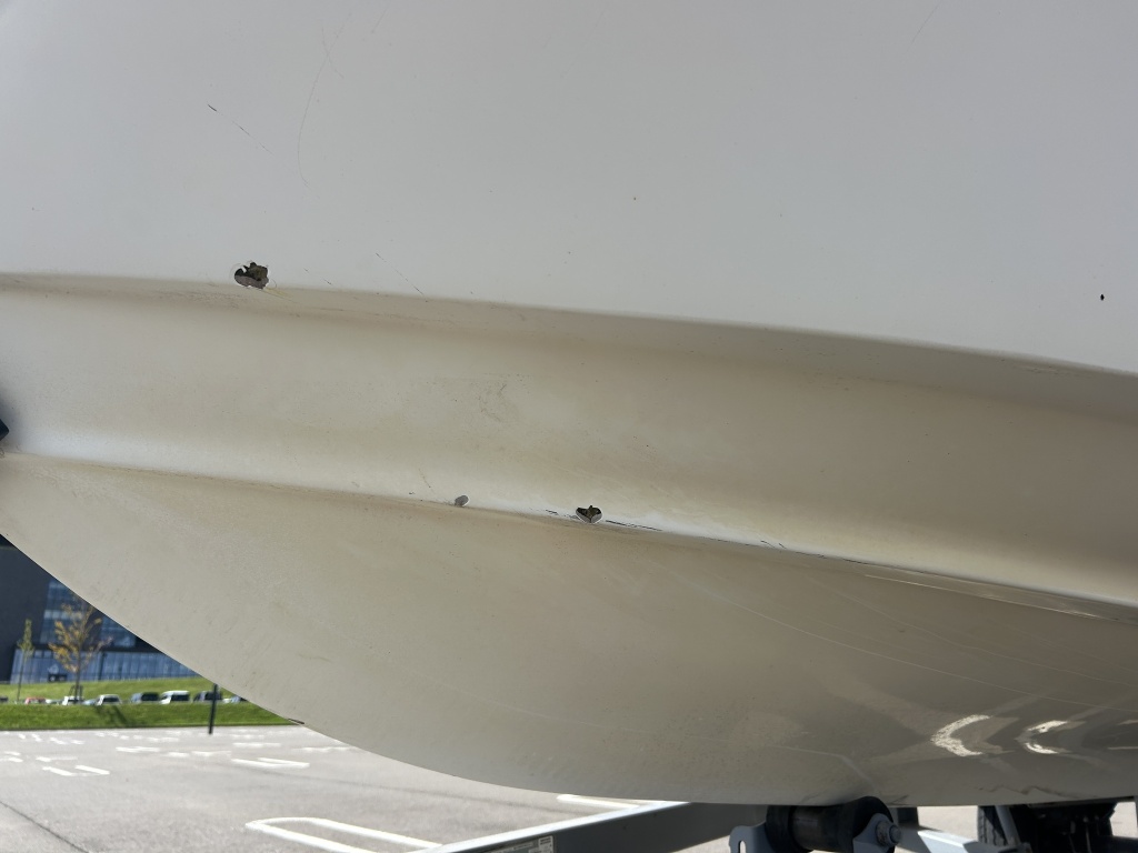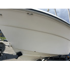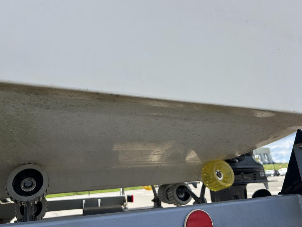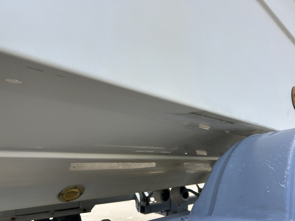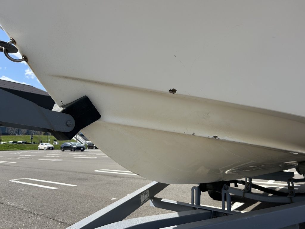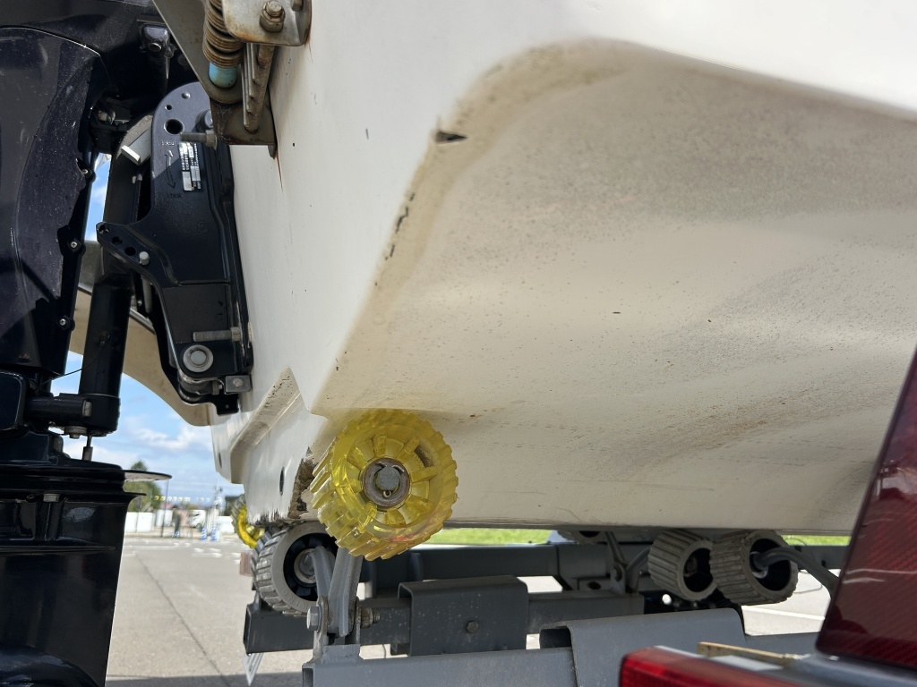 外観については、右舷ガンネル付近の傷や、船底の小規模なゲルコート剥離・トランサム角の削れなど年式相応の使用感があります。