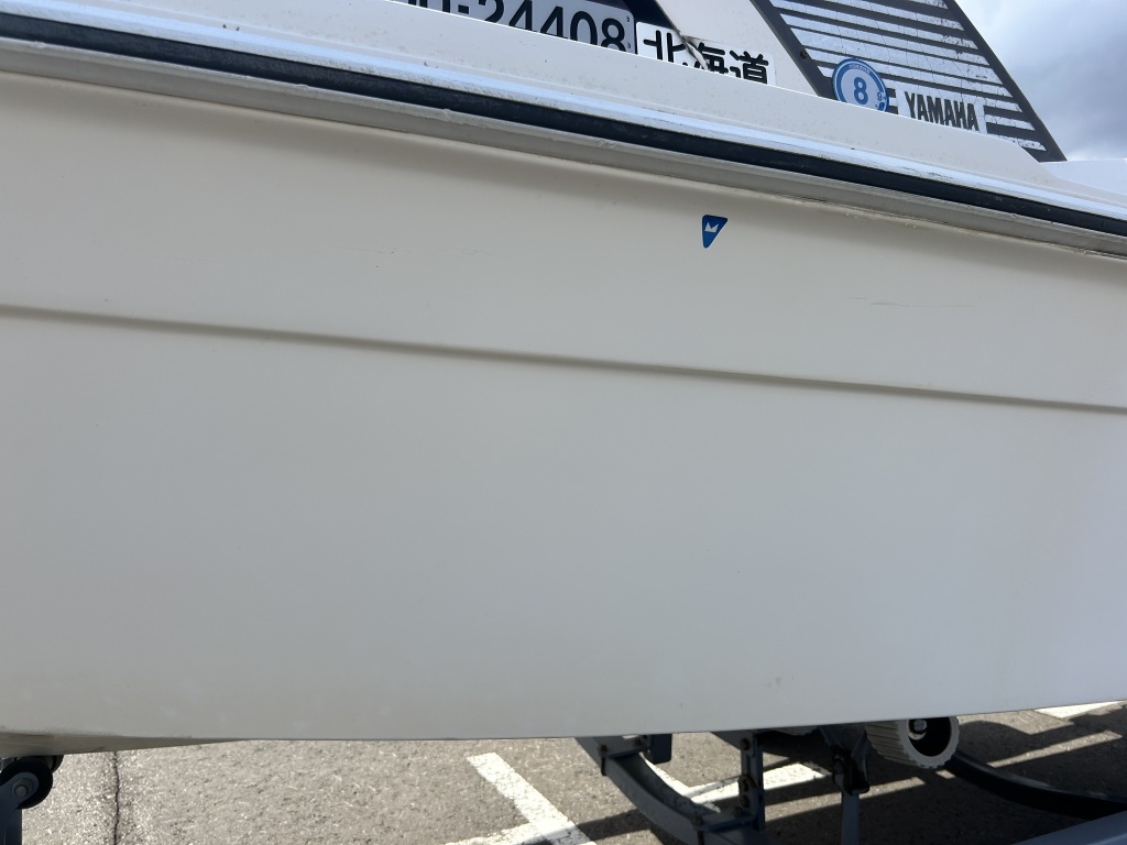 右舷ガンネル付近に引っかき傷があり、一部ゲルコートが削れています。