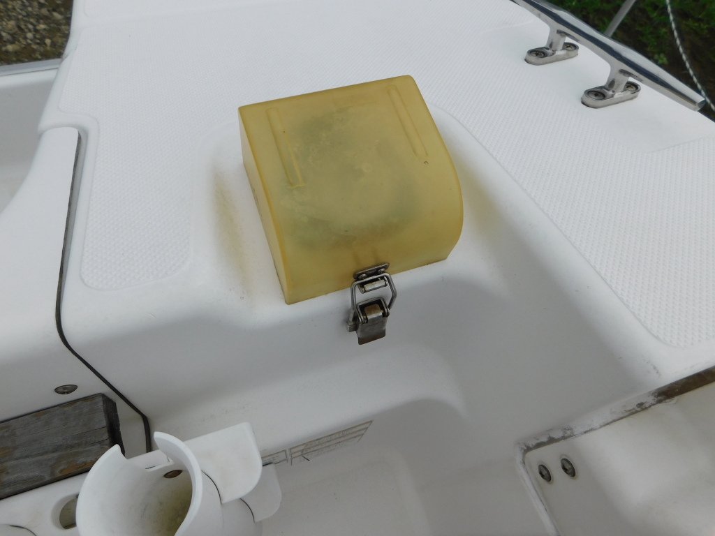 デッキは23フィートの割には前後とも十分にスペースがあり前後での釣りにも対応できそうです。デッキ面は痛みやフワ付いたような箇所もなく、滑り止めも摩耗したようなところも見受けられません。電動ウィンチは前後に装備されています。