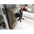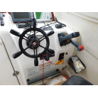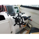 操船席はシンプルな作りで視界はよさそうです。GPS魚探YF-1000Ⅱと魚探単体のHONDEX HE-775が見易く配置されています。