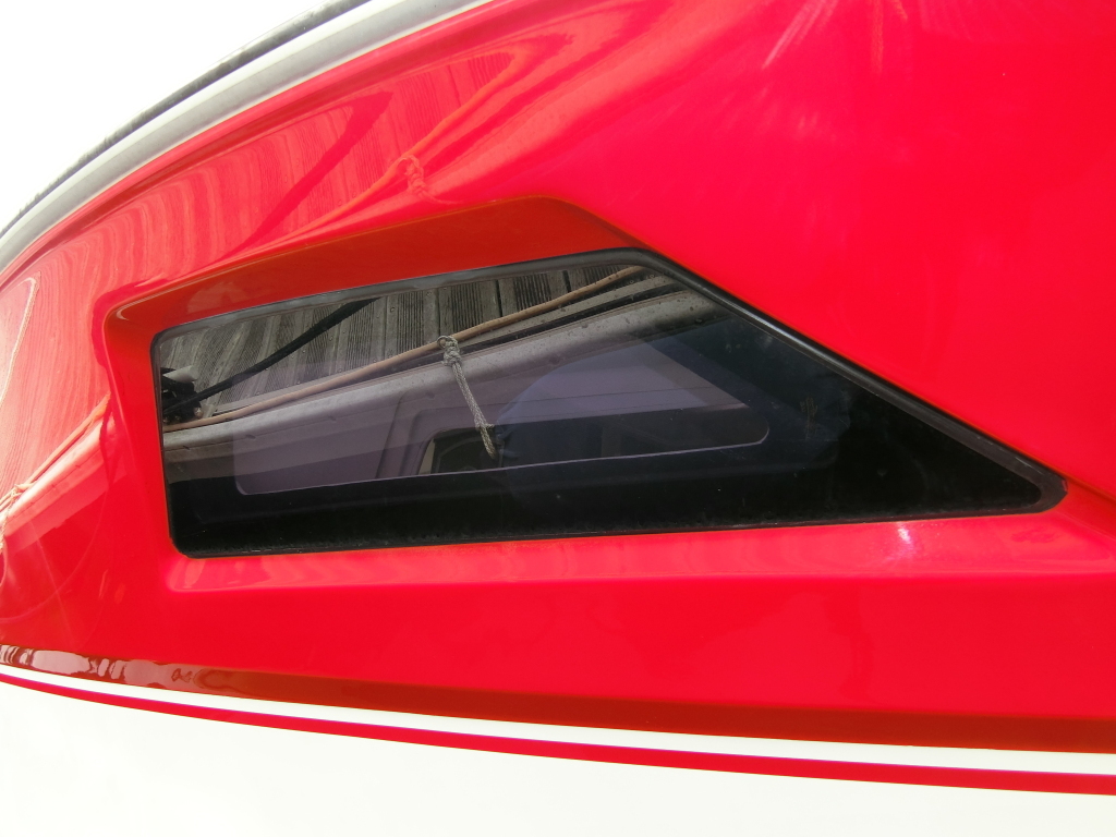 ・フロントウインドは赤いウインドゥマスクでカバーされ、船体との統一感が見られます。