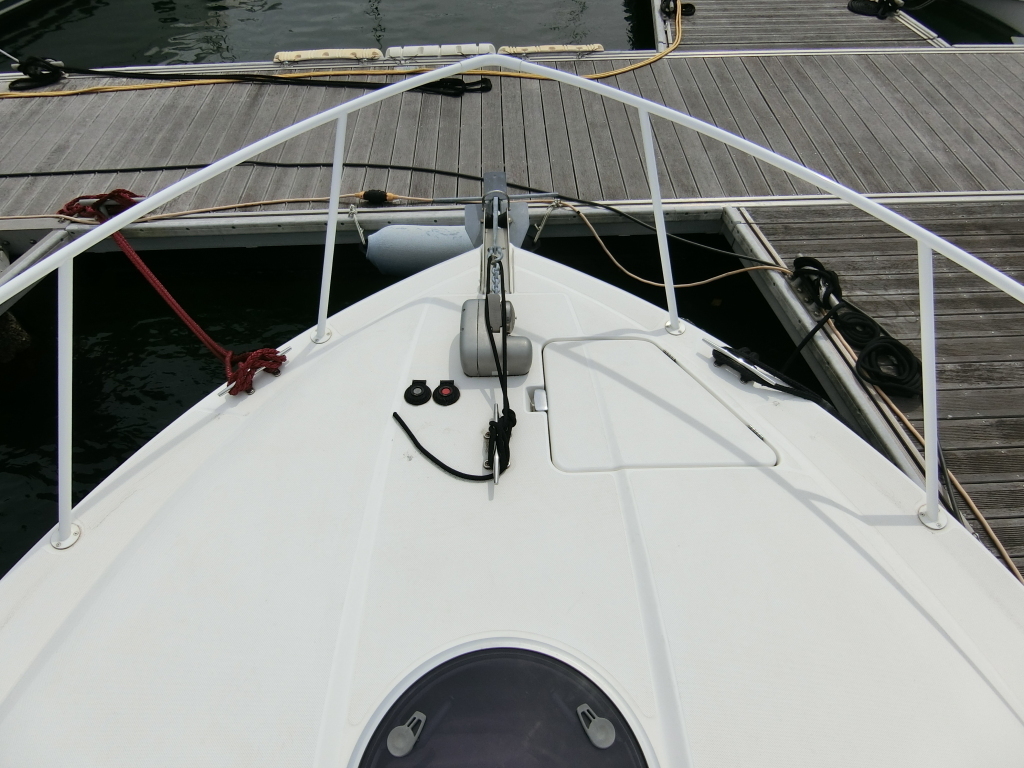 ・船首にはウインドラスと固定されているアンカーが付属。アンカーには少し曲がりが見られます。
