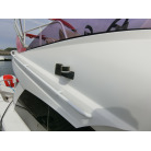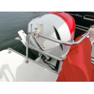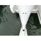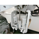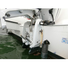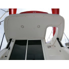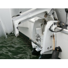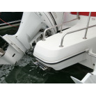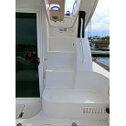 ・デッキ後部のエンジンの間にはトランサムステップとスイミングラダーが備わります。
