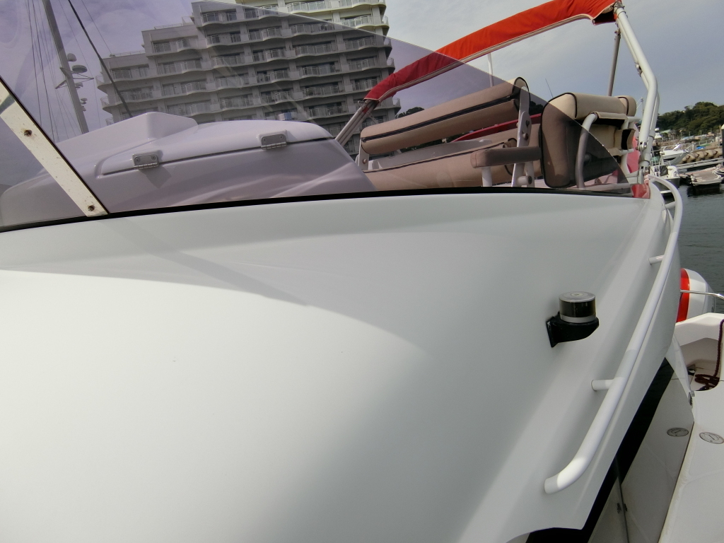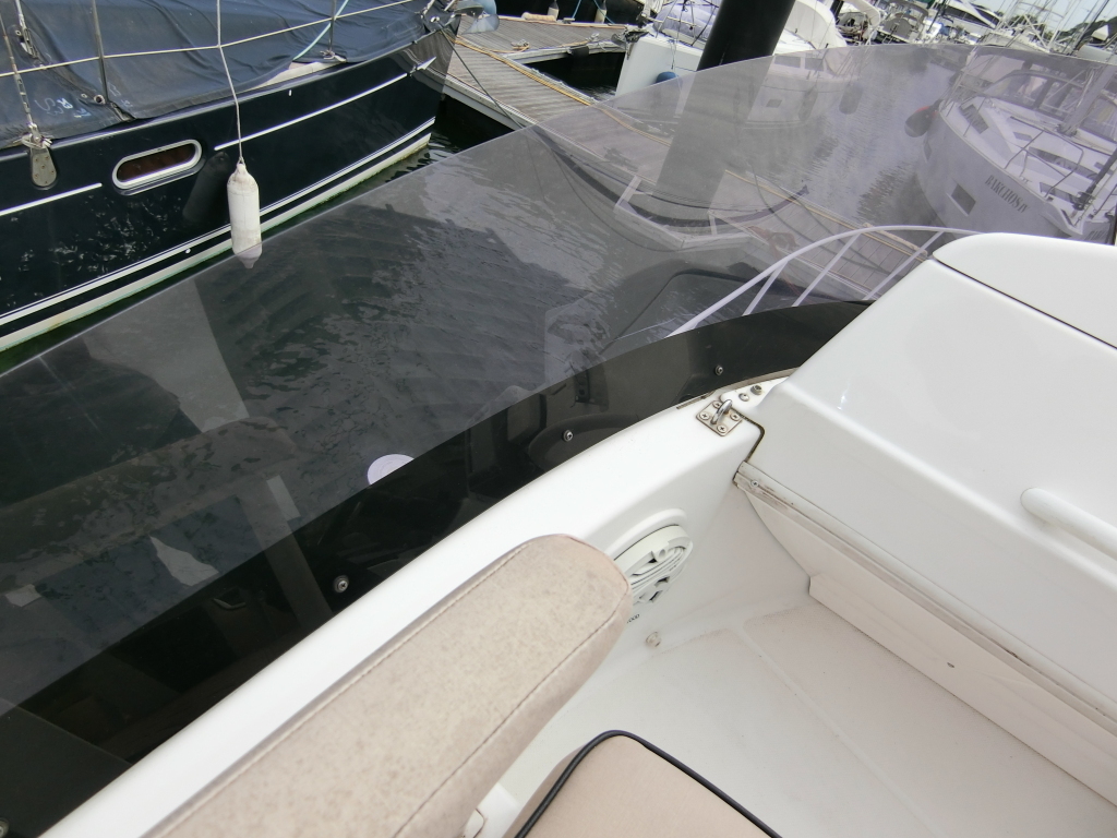 ・操船席前方のウインドシールドのアクリルは割れなく良好です。