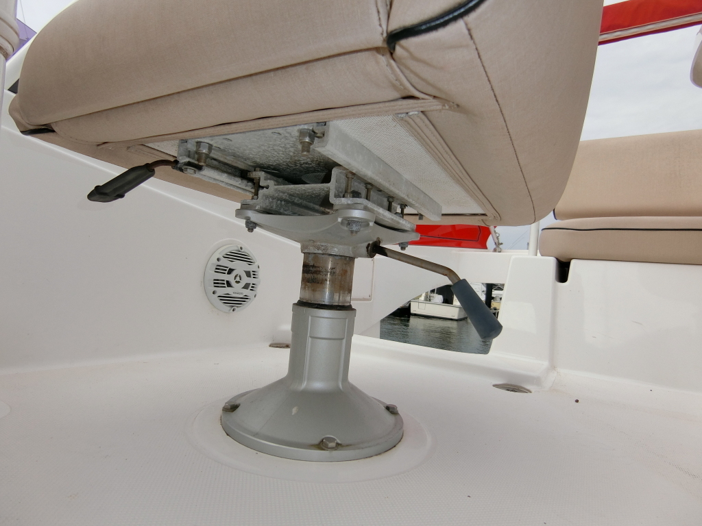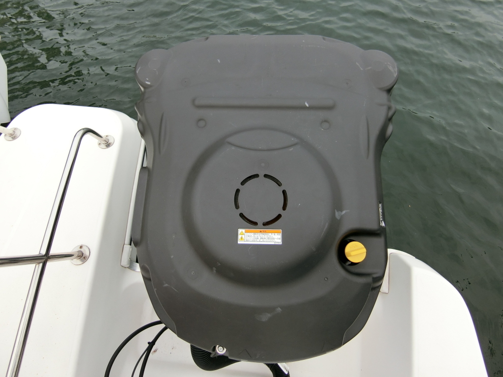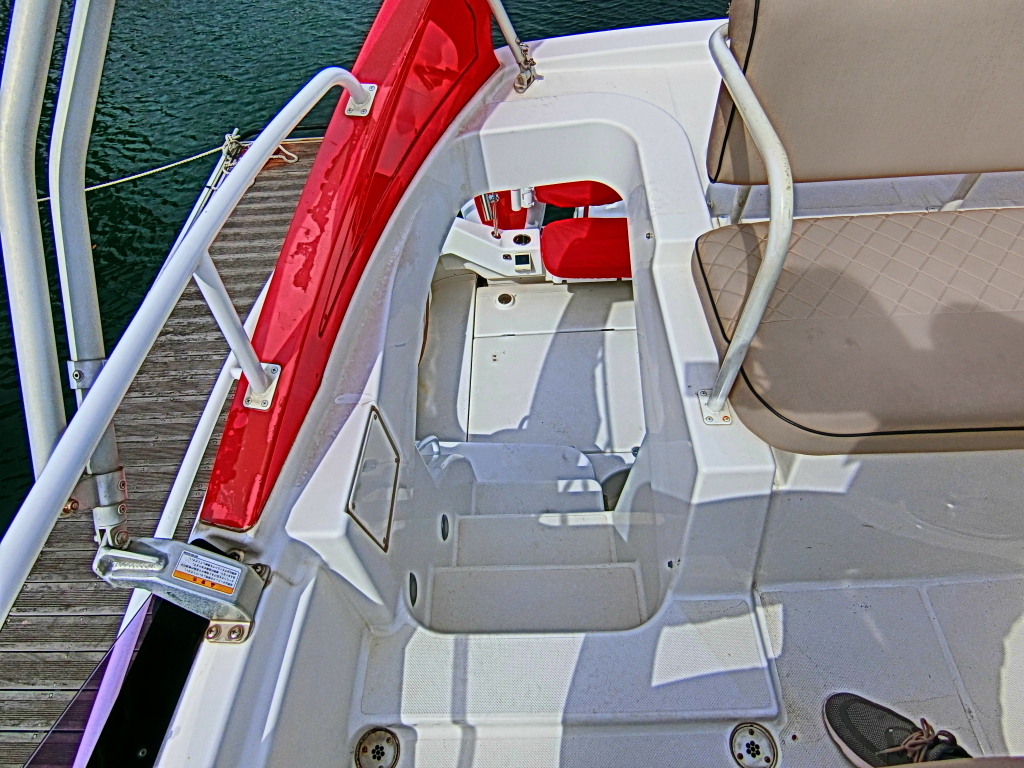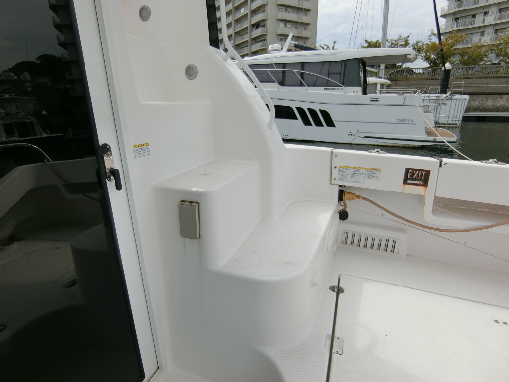 ・右舷側のリモコンの前方にジョイスティックが設置されており、この艇の一番の特徴でもある「HELM MASTER」をシステムを装備している事が分かります。