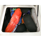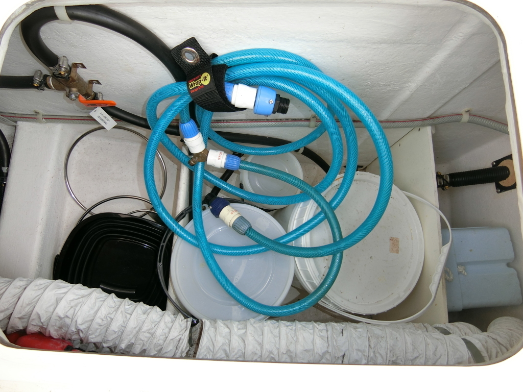フェンダーや大き目な海遊びの道具等も収納可能で、ロッカー内の蓋つき収納ボックス内がバッテリースペースです。バッテリーはM31MFを8個使用しております。
