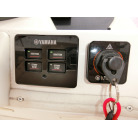 ・操船席周りの計器はGPS魚探(ヤマハ YFHⅥ104ーF)とカラーディスプレイ、オーディオコントロールパネルのとてもシンプルで視認し易い配置です。