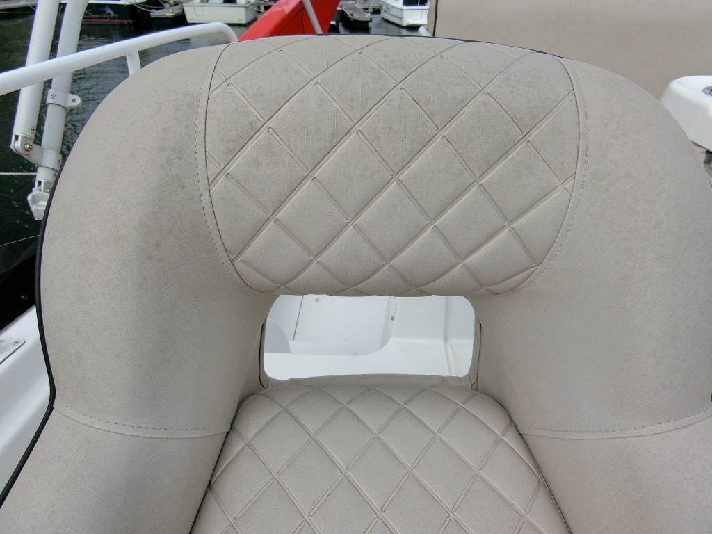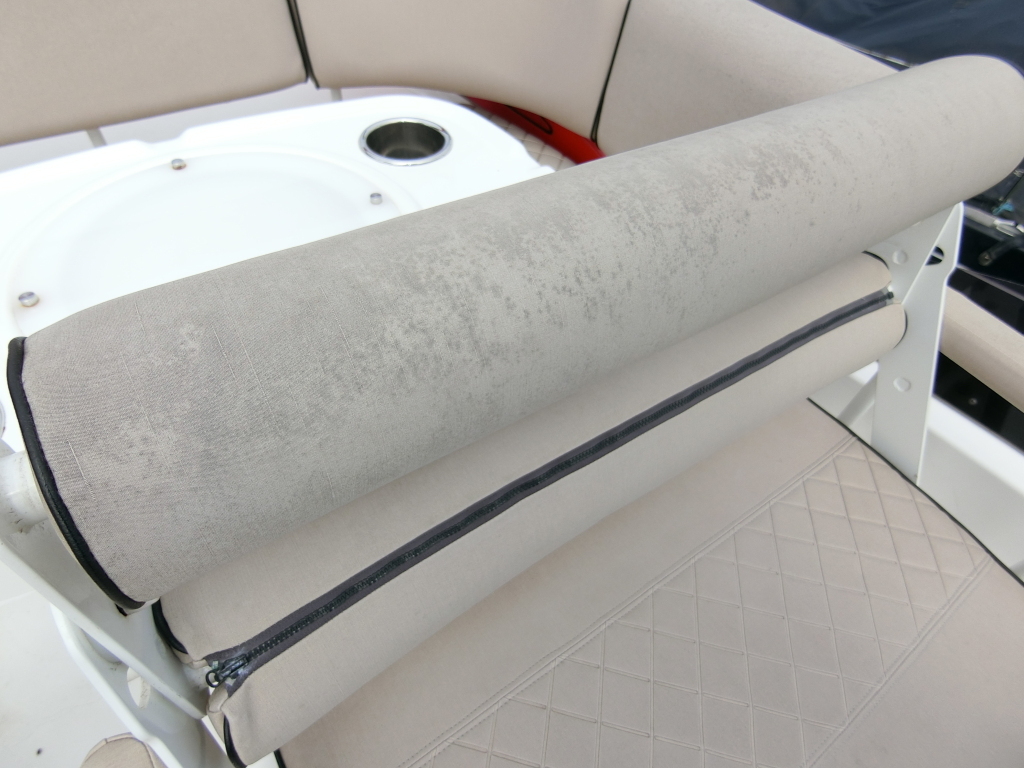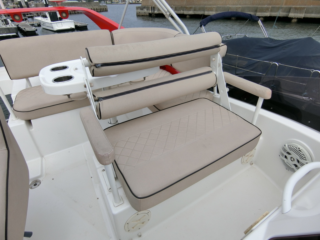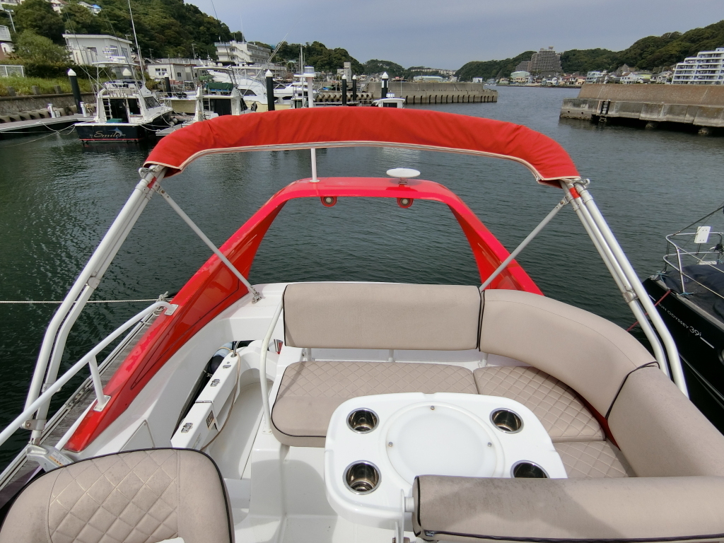 ・デッキ後部にベンチシートを装備。こちらのカバーもウインドゥマスク同色で製作されております。