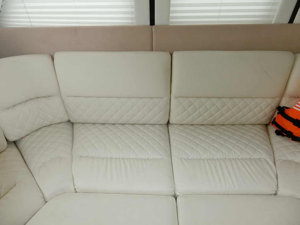 ・FBはパネル周り、操船席、ラウンジシートの3カ所を赤い専用カバーを掛けて保管されており、シートに日焼けによる退色は少なく切れ等も見られません。