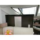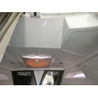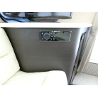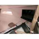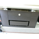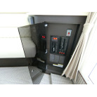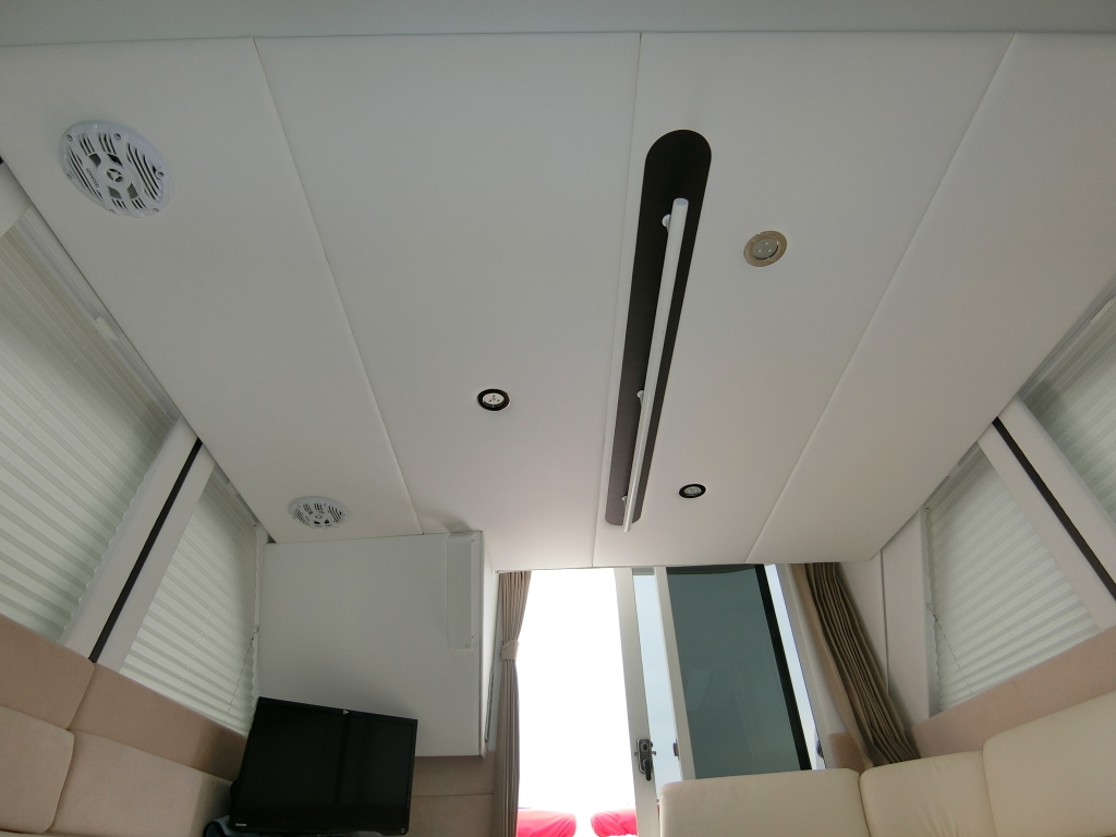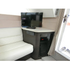・サロン入口右舷側にテレビを設置。テレビの下方にはFBと連動するオーディオのコントローラ、エアコンのスイッチパネルはギャレー側パーテーションパネルに設置。