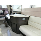 ・右舷側はベンチシート、左舷側に足を伸ばして寛げるラウンジシートです。