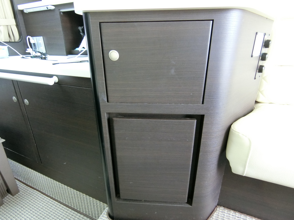 ・操船席パネルの左舷側には小さいですがアイスボックスが装備されておりました。