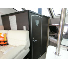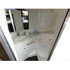 ・個室内は電動のマリントレイ、シンク、ミラー付ロッカーで、室内は明るく高さもあり、着替えが出来る程のスペースがあります。女性ゲストも安心してクルージングやマリンステイが楽しめると思います。