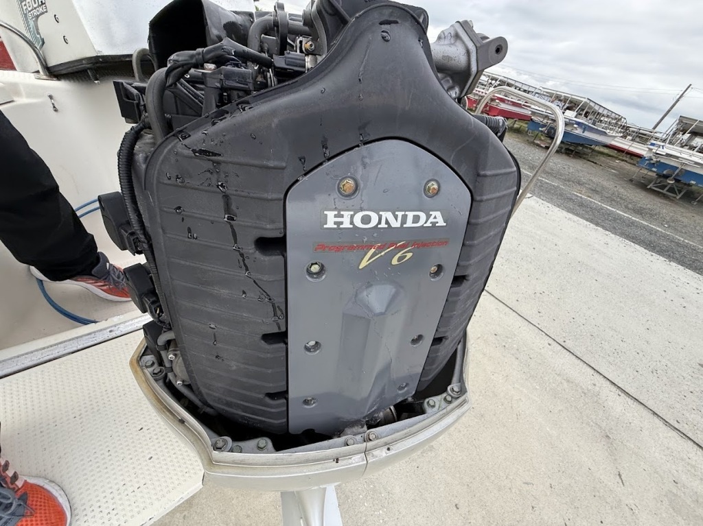 エンジンは、ホンダ175馬力の船外機を津際しており最速36ノット近く滑走します。
