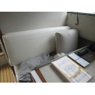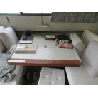 キャビン内左舷中央にテーブルとソファがあります。