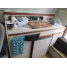 後部右舷側にギャレーがあり、コンロ、冷蔵庫が装備されております。
