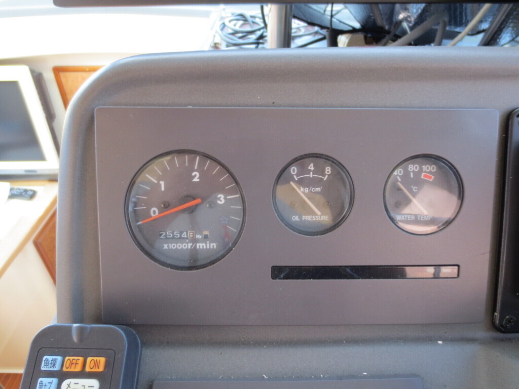 ここ何年か前にオートパイロットの追加艤装もされたそうです。アワーメータは左右の誤差も余り無い状態です。1621時間の際に主機換装との記載が残っています。