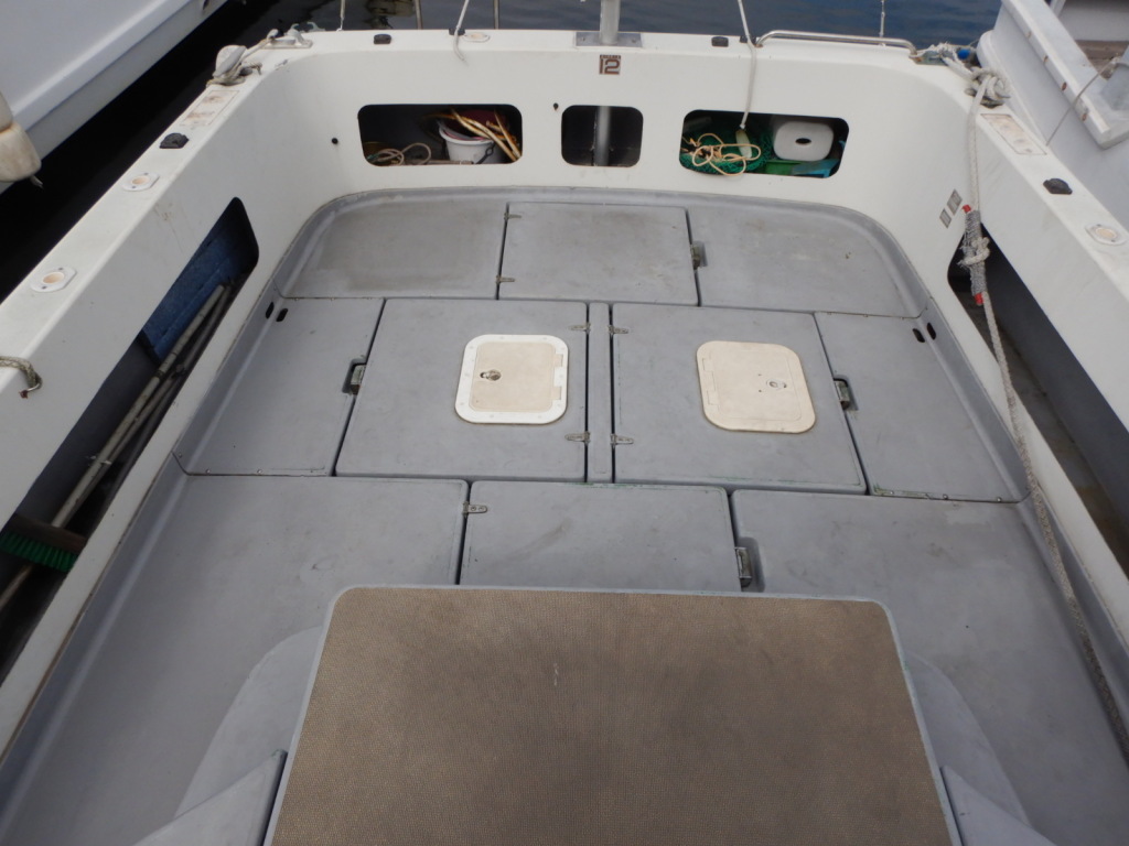エンジンがキャビン後方にある為、アフトデッキが広大です。