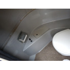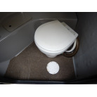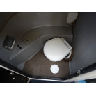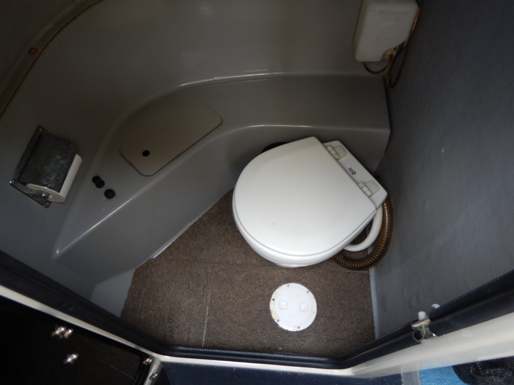 操船席前には、ゆったりしたマリントイレが装備されています。