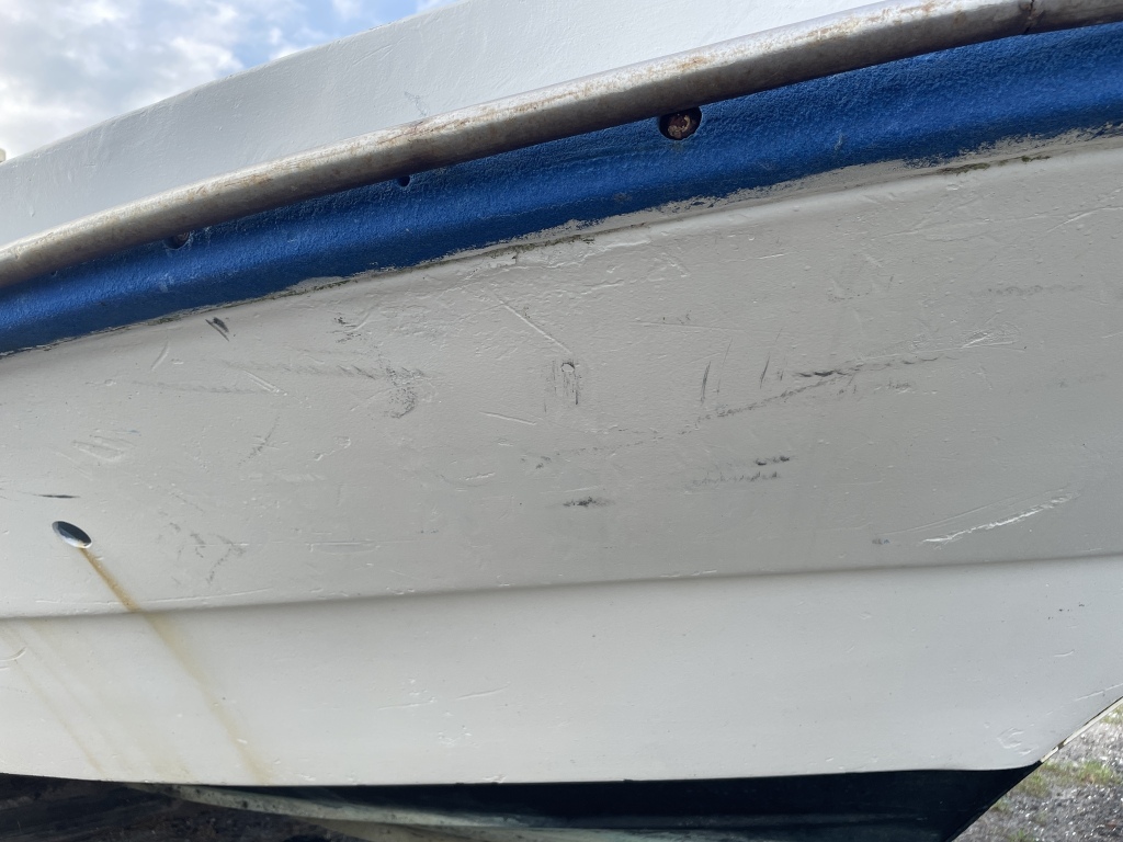 ハル周りは、全体的に小傷や色褪せなど見られますが、