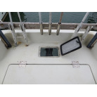 中間シャフト艇でエンジンは船体中央のブリッジ床下にある為、トモは広く使えます。釣りに必須のイケスも装備されています。