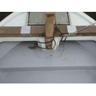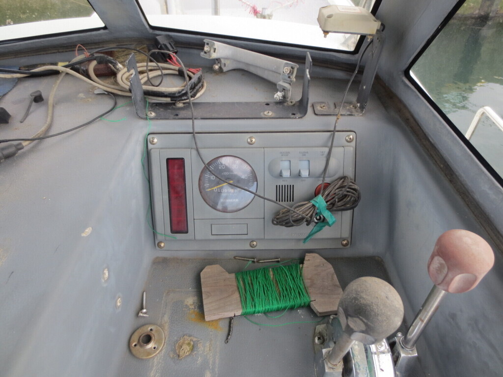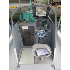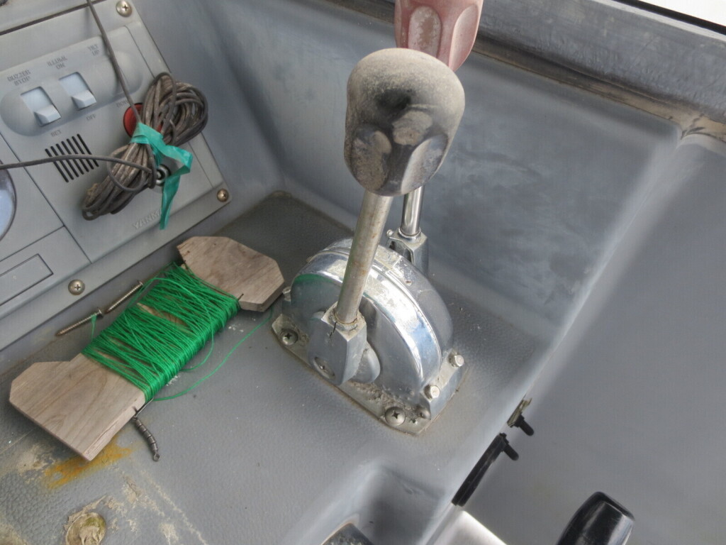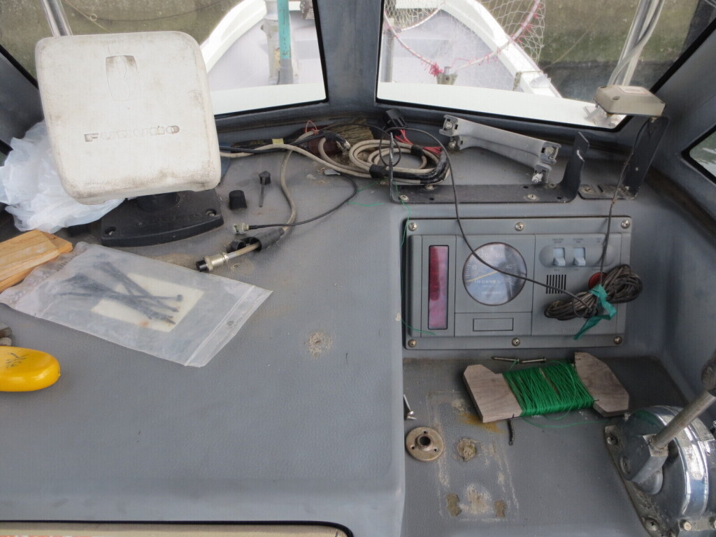 シンプルな操船場です。GPS魚探と魚探単体が装備されています。前面のシールドはガラス製の為アクリルの様に小傷が付かずに視界が良いです。