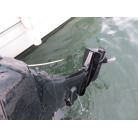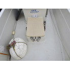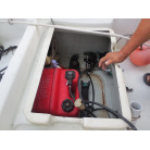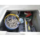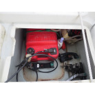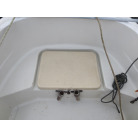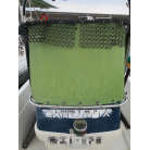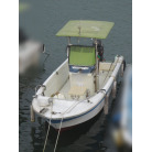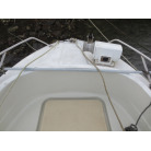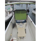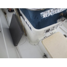 操船部はオーニングで覆われ、魚探は防犯用の施錠の出来る箱に収納されており、コンソールには保管時にカバーが掛けられています。