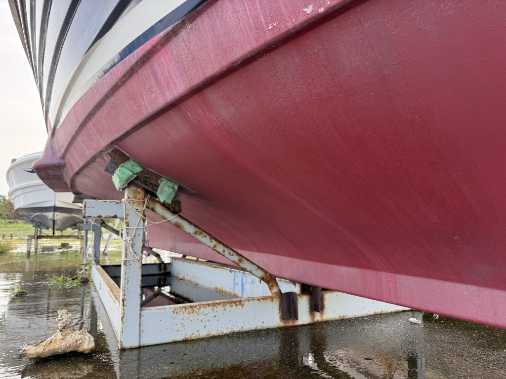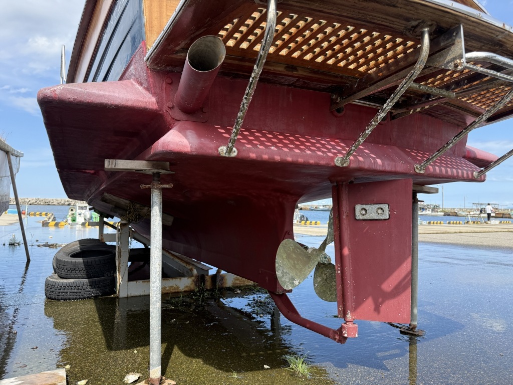 この艇は、海外から中古艇として輸入したクルージングボートで、年式については不明とのことでした。